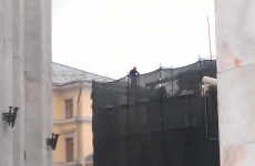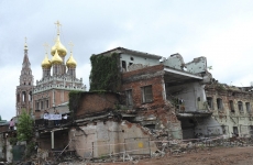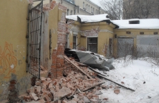В Москве в ночь с 9 на 10 марта начались работы по надстройке дома князя Волконского на Воздвиженке. Рабочие с помощью отбойных молотков начали разбирать кровлю и уничтожают торцевую стену особняка со стороны Арбатской площади.