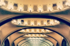 Станция "Маяковская" предстала в неожиданно контрастном свете - энергосберегающие лампы, залившие новым светом половину интерьера, изменили привычный облик станции.