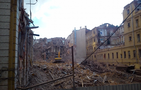 Говорить можно, впрочем, что угодно, а результаты налицо. Ценность уничтожаемых зданий не отрицает никто (кроме девелоперов из «Великана – XXI век», разумеется). Акт государственной историко-культурной экспертизы признал их ансамблем памятников федерального значения. Картинки фасадов, которые стираются в кирпичную пыль, публикуются в журнале Мосгорнаследия. А его руководитель голосует за их снос. Год Литературы и год 120-летия со дня рождения великого национального поэта Есенина московские власти решили начать с разрушения его мемориального адреса. Под «многофункциональный» офисный центр с подземными парковками в охранной зоне.