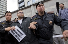 У здания столичного ГУ МВД на Петровке, где со вчерашнего вечера проходит акция в знак протеста против ареста участников событий на Болотной площади 6 мая, задержаны 8 человек.